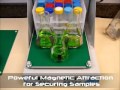 The standard platform (included with all three models) features a non-slip, rubber coated surface, ideal for tissue culture flasks, petri dishes and staining trays. Convenient Magic Clamp platforms, flask clamps and tube racks are also available for use with Erlenmeyer flasks and test tubes. This unique, magnetic attachment method is the easiest way to instantly change between flask clamps of different sizes. Each clamp utlizes a powerful (patent pending) magnetic base to securely attach the clamp to the shaking platform without the use of screws, bolts or tools.